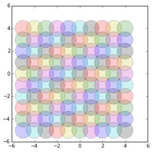 $$ \mathbb{Z}[i] + \left\{ x^2 + y^2 < \tfrac{1}{2} \right\} = \mathbb{C}$$