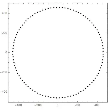 Original code was faulty (whole thing was wrapped in manipulate which meant random seed was constantly changing). Code and gifs now updated. The images certainly seem to make more sense - it appears that the group tend towards eventually reforming back into a circle, but this is only speculation. The same questions still apply though.