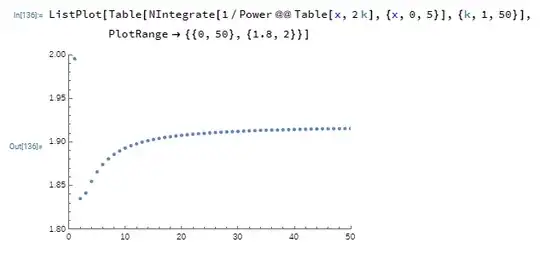 - The first step in the method above means that the area gained in the interval $(0,1)$ is greater than the area lost in $(1,\infty)$. It appears that the consecutive differences (plotted below as