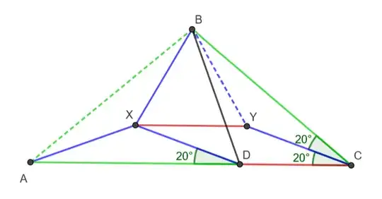 I need help with this geometry question. Find $x$ if $AD=CB$. Justify geometrically.