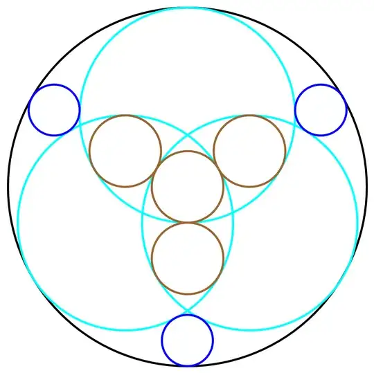But the diameter of a cyan circle is clearly the sum of the radii of the brown and black circles, so we have
