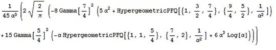 So it doesn't look like you can do anything from those hypergeometric functions, really. You can transform them into a $_2F_1$ and another $_3F_2$ but the fact that you have $1/\alpha^2$ and not 1 throws a wrench into it for sure. – Eugene Bulkin Feb 23 '14 at 22:47