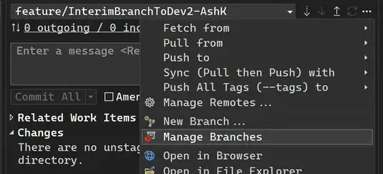 Checkout the branch where you want to merge dev into by going to 'Manage Branches' and double clicking your branch name. In my case, it's feature\InterimBranchToDev2-AshK.