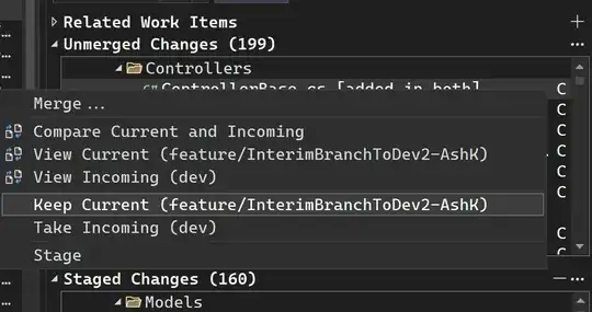 Now it's very tedious to right click each of those files and click Keep Current (feature/InterimBranchToDev2-AshK), so let's Abort this and take care of this using command line.
