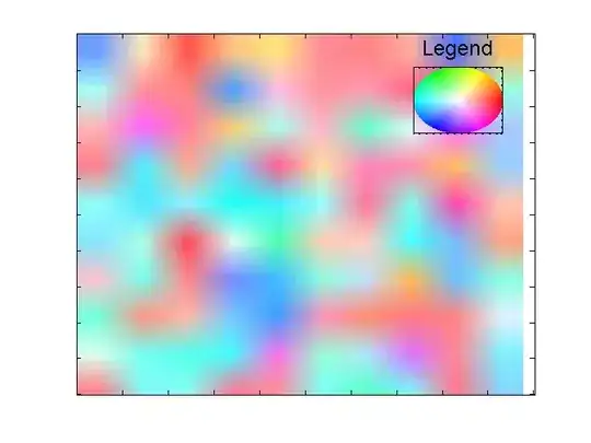 My question is a bit more conceptual than anything. I am representing a spatial map (map of a metropolitan area, say) in a polar coordinate system. I have recorded data from people in a 10x10 home suburban neighbourhood asking where they would like to live in this metropolitan area given by (r,theta) -- r the distance from the center, theta the angle around the x axis, so I am using a polar coordinate system and using HSV to color code it, keeping V=1=constant. After getting the HSV color of each home, I transformed this 10x10x3 HSV matrix to RGB and used image() to display the following plot.