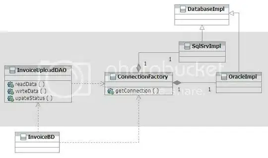 - InvoiceBD gets an Oracle connection from the factory class and calls InvoiceUploadDAO.readData passing it the Oracle connection object.