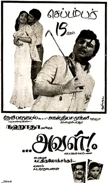 ...Aval! (transl. She!)[2] is a 1972 Indian Tamil-language erotic drama film written and directed by A. C. Tirulokchandar, produced by Vijayalakshmi Pictures and presented by Nahatha Pictures. A remake of the 1971 Hindi film Do Raha, it stars V. Nirmala, A. V. M. Rajan, Srikanth and Sasikumar. The film was released on 15 September 1972, and became a commercial success.