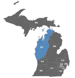 Area code 231 is a telephone area code in the North American Numbering Plan (NANP) for the northwestern portion of the Lower Peninsula in the U.S. state of Michigan,