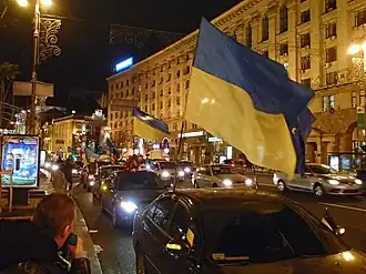 Automaidan (Ukrainian: Автомайдaн) is a pro-European Ukrainian socio-political movement involving the use of cars and trucks as means of protest that first began in late 2013 in Kyiv within the advent of Euromaidan.