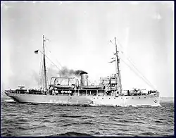 After the outbreak of World War I in 1914, Acadia was among the government vessels used to patrol the Bay of Fundy during the winter months, sailing between Yarmouth, Nova Scotia and Grand Manan.[18] Acadia was commissioned into the RCN on 16 January 1917, as a patrol vessel, replacing the CGS prefix with His Majesty's Canadian Ship (HMCS), thus becoming HMCS Acadia.[4] Though intended for patrol, the vessel's slow speed made her practically unusable. The vessel was armed with one 4-inch (102 mm) gun placed forward.[19] From 1917 until the end of the war, she conducted anti-submarine patrols from the Bay of Fundy along Nova Scotia's Atlantic coast and through the Gulf of Saint Lawrence.[4] On 6 December 1917, less than twelve months into her wartime service, Acadia survived the Halifax Explosion. Acadia was serving as a guard ship at the entrance to Bedford Basin but suffered only minor damage.[20] In 1918, she was one of the Canadian warships assigned to escort merchant convoys through Canadian waters, defending them against the German submarine threat.[21] Near the end of the war, she served as a platform for experiments with anti-submarine kite balloons.[22] The ship was decommissioned from RCN service in March 1919.[4]
