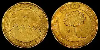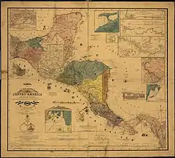 The Federal Republic of Central America, initially known as the United Provinces of Central America, was a sovereign state that existed from 1823 to 1840. It was composed of five states: Guatemala, Honduras, El Salvador, Nicaragua, and Costa Rica. The federation was established after these regions declared independence from Spain in 1821 and briefly joined the Mexican Empire before breaking away to form their own union. The republic adopted a constitution in 1824, which was inspired by the federal system of the United States. It provided for a federal capital, initially located in Guatemala City, and a president for each of the five constituent states. The constitution abolished slavery and maintained the privileges of the Roman Catholic Church, while restricting suffrage to the upper classes.[12]