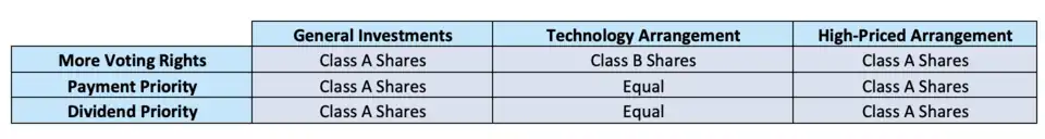 Companies choose to create Class B shares and dual-class structures to allow founders, and other corporate insiders to gain almost complete voting control over the company. This is crucial in the early years of a public company because founders are able to execute their own vision without disruption while being able to tap into the public market’s financing, and being able to enjoy the perks of being a public company.[38][39] Companies choose to mitigate the risk of exposing their governance and assets to the public market by defining different classes of shares to ensure corporate insiders are in control of the voting rights. With Class B shares in a company, authorities are able to assign different rights to different classes of stockholders. They use different classifications to address issues such as voting authority, dividends, as well as rights to capital and assets.[40]