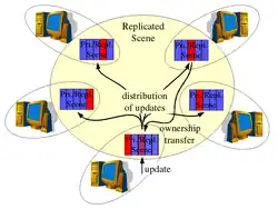 Collaborative virtual environments are used for collaboration and interaction of possibly many participants that may be spread over large distances. Typical examples are distributed simulations, 3D multiplayer games, collaborative engineering software, collaborative learning applications,[1] and others. The applications are usually based on the shared virtual environment. Because of the spreading of participants and the communication latency, some data consistency model have to be used to keep the data consistent.