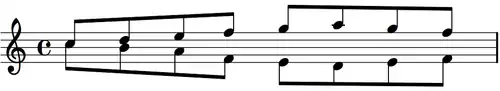 In music theory, contrapuntal motion is the general movement of two or more melodic lines with respect to each other.[1] In traditional four-part harmony, it is important that lines maintain their independence, an effect which can be achieved by the judicious use of the four types of contrapuntal motion: parallel motion, similar motion, contrary motion, and oblique motion.[2][3]