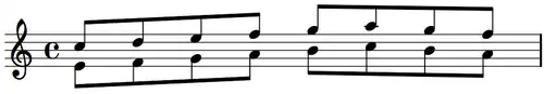 In first-species counterpoint, it is recommended to limit parallel thirds or sixths to three consecutive uses of a given intervallic size.[5]