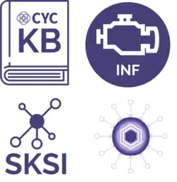 ![]() (Clockwise) Logos for Cyc's Knowledge Base, Inference Engines, Actionable Output, and Intelligent Data Selection | |