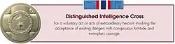 The Distinguished Intelligence Cross is the highest decoration awarded by the United States Central Intelligence Agency. It is given for "a voluntary act or acts of extraordinary heroism involving the acceptance of existing dangers with conspicuous fortitude and exemplary courage". Only a handful of people have been awarded this medal in the history of the agency, most posthumously. As a consequence, it is one of the rarest awards for valor in the United States.[1]