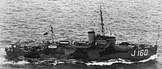 Chignecto was originally armed with a single quick-firing (QF) 4-inch (102 mm)/40 caliber Mk IV gun mounted forward that was later replaced with a 12-pounder (3 in (76 mm)) 12 cwt HA gun.[1][3][a] For anti-aircraft purposes, the minesweepers were equipped with one quick-firing (QF) 2-pounder Mark VIII and up to three single-mounted QF 20 mm Oerlikon guns.[1][2] As a convoy escort, Chignecto was deployed with 40 depth charges launched from two depth charge throwers and four chutes.[1][3]