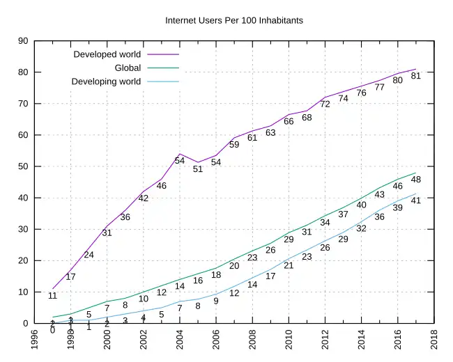 - ^ "World Internet Users Statistics and 2019 World Population Stats". internetworldstats.com. Archived from the original on 24 November 2017. Retrieved 17 March 2019.
