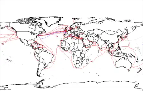 The origins of the Internet date back to research that enabled the time-sharing of computer resources, the development of packet switching in the 1960s and the design of computer networks for data communication.[2][3] The set of rules (communication protocols) to enable internetworking on the Internet arose from research and development commissioned in the 1970s by the Defense Advanced Research Projects Agency (DARPA) of the United States Department of Defense in collaboration with universities and researchers across the United States and in the United Kingdom and France.[4][5][6] The ARPANET initially served as a backbone for the interconnection of regional academic and military networks in the United States to enable resource sharing. The funding of the National Science Foundation Network as a new backbone in the 1980s, as well as private funding for other commercial extensions, encouraged worldwide participation in the development of new networking technologies and the merger of many networks using DARPA's Internet protocol suite.[7] The linking of commercial networks and enterprises by the early 1990s, as well as the advent of the World Wide Web,[8] marked the beginning of the transition to the modern Internet,[9] and generated sustained exponential growth as generations of institutional, personal, and mobile computers were connected to the internetwork. Although the Internet was widely used by academia in the 1980s, the subsequent commercialization of the Internet in the 1990s and beyond incorporated its services and technologies into virtually every aspect of modern life.