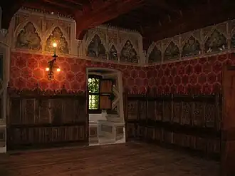 The castle suffered two major incidents in modern times that necessitated further restorations: a fire in the second half of the 19th century and another at the beginning of the 20th century. In the latter case, the owner, Cavalier Gonella, commissioned the direction of the restoration work in 1910 to architect Jean Chevalley, resulting in the castle’s current appearance.[1]