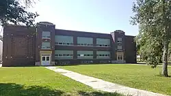 In 1901, the first term of school was help in a building that had been relocated into town, serving twenty-three students, ranging in age from five to eighteen years. In 1903, a frame school building was built on the site two blocks east of Main Street and was used until 1921, when the fireproof brick schoolhouse was constructed.[9]