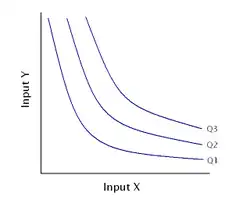 In microeconomic theory, the marginal rate of technical substitution (MRTS)—or technical rate of substitution (TRS)—is the amount by which the quantity of one input has to be reduced () when one extra unit of another input is used (), so that output remains constant ().