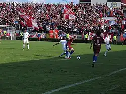 Issah (in white) tackling Dušan Petronijević in 2009 | |||