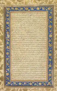 Jahangir (born Salim,[55] reigned 1605–1627) was born to Akbar and his wife Mariam-uz-Zamani, an Indian princess.[56] Salim was named after the Indian Sufi saint, Salim Chishti.[57][58] He "was addicted to opium, neglected the affairs of the state, and came under the influence of rival court cliques".[41] Jahangir distinguished himself from Akbar by making substantial efforts to gain the support of the Islamic religious establishment. One way he did this was by bestowing many more madad-i-ma'ash (tax-free personal land revenue grants given to religiously learned or spiritually worthy individuals) than Akbar had.[59] In contrast to Akbar, Jahangir came into conflict with non-Muslim religious leaders, notably the Sikh guru Arjan, whose execution was the first of many conflicts between the Mughal Empire and the Sikh community.[60][61][62]