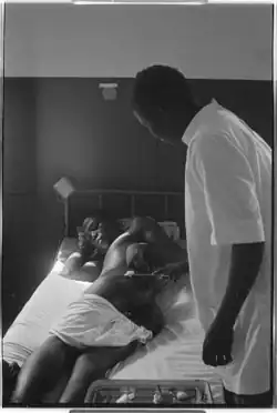 A nurse treating a patient with burns, Ziguinchor PAIGC hospital, 1973