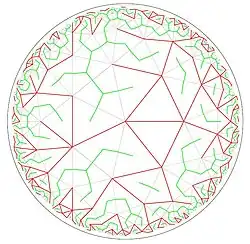 - ^ a b c Lopez, Jorge H.; J. M. Schwarz (2017). "Constraint percolation on hyperbolic lattices". Physical Review E. 96 (5): 052108. arXiv:1512.05404. Bibcode:2017PhRvE..96e2108L. doi:10.1103/PhysRevE.96.052108. PMID 29347694. S2CID 44770310.