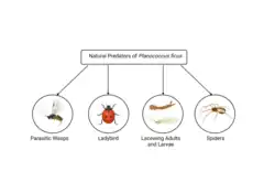 Vine mealybugs have multiple natural predators such as predatory beetles like the Lady bird, parasitoid wasps such as Leptomastidea abnormis and entomopathogenic nematodes Steunernematidae and Heterorhabditidae.[8]