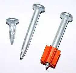 Powder-actuated fasteners are made of special heat-treated steel; common nails are unsafe for this application. There are many specialized fasteners designed for specific applications in the construction and manufacturing industries.