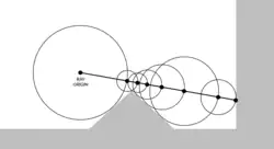 In SDF ray marching, or sphere tracing,[16] each ray is traced in multiple steps to approximate an intersection point between the ray and a surface defined by a signed distance function (SDF). The SDF is evaluated for each iteration in order to be able take as large steps as possible without missing any part of the surface. A threshold is used to cancel further iteration when a point is reached that is close enough to the surface. This method is often used for 3-D fractal rendering.[17]