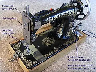 3. ^ "Singer 28, 28K, 128, and 128K Vibrating Shuttle Sewing Machines".