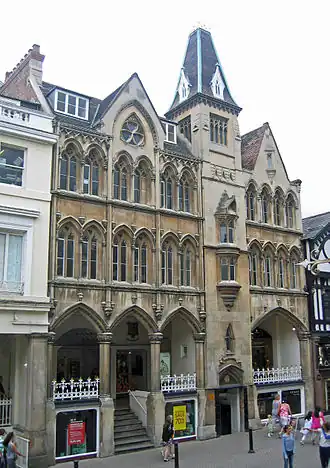 He was then appointed as County Surveyor of Cheshire and moved to Chester, Cheshire.[2] Here he laid out Overleigh Cemetery in 1848–50. This has been designated by English Heritage at Grade II in the National Register of Historic Parks and Gardens.[4][5] He is credited with pioneering the Black-and-white Revival (vernacular or half-timbered) style in the city during the 1850s.[6][7][8] His first building in this style was constructed in Eastgate Street in 1852, but it has since been demolished.[9] His other notable buildings in Chester were designed both in Black-and-white Revival and in other styles. They include Crypt Chambers (1858) in Eastgate Street, which is in Gothic Revival style,[10] Queen Hotel (1860–61) opposite Chester railway station, which is Italianate,[11] and Grosvenor Hotel (1863–86) in Eastgate Street, which is constructed in a mixture of timber-framing, brick and stone.[10] These three buildings have all been designated by English Heritage as listed buildings, Crypt Chambers at Grade I,[12] and the other two at Grade II.[13][14]