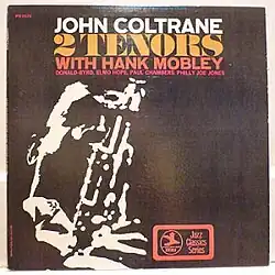 Two Tenors is an album credited to jazz musicians John Coltrane and Hank Mobley, released in 1969 on Prestige Records, catalogue 7670. It is a reissue of Prestige 7043 Informal Jazz by Elmo Hope, released in 1956. As Coltrane's fame grew during the 1960s long after he had stopped recording for the label, Prestige assembled varied recordings, often those where Coltrane had been merely a sideman, and reissued them as a new album with Coltrane's name prominently displayed. In this case, by 1969 Hope had become a far less marketable figure than Coltrane and Mobley, hence the redesignation of the LP.