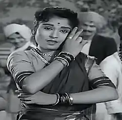 Chavan went on to work in several Marathi films including Khandobachi Aan, Mukkam Post Dhebewadi, Ashi Rangali Ratra, and Kortacha Pairi. She rose to further prominence with Songadya (1971), opposite Dada Kondke.[9] Their on-screen pairing became highly popular and led to a series of commercially successful films such as Ekta Jeev Sadashiv (1971), Pandu Havaldar (1975), Ram Ram Gangaram (1977), Bot Lavin Tithhe Gudgudlya (1978), Palva Palvi (1990), Yeu Ka Gharat (1992), Sasarch Dhotar (1994), and Vajvu Ka?.[10] Apart from her collaborations with Kondke, she worked with other noted actors including Ganpat Patil in Sakhya Sajna, where the film succeeded without a conventional hero, and Nilu Phule in Sonaran Tochla Kan and Bapadya. Her role in Ranpakhre received critical appreciation and awards. He also appeared in Hindi films such as Shirdi Ke Sai Baba, Tere Mere Beech Mein, and Andheri Raat Mein Diya Tere Haath Mein. She produced and directed two Marathi films, Gauracha Navra and Dharpakad. She received Maharashtra State Film Awards for her performances in Kela Ishara Jata Jata, Bot Lavin Tithhe Gudgudlya, and Chorawar Mor.[8]