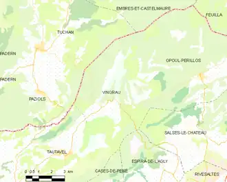 Vingrau is located in the canton of La Vallée de l'Agly and in the arrondissement of Perpignan.