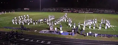 The stylings of the Whetstone High School Marching Band can be traced back to The Ohio State University Marching Band through uniform and showmanship. The WHSMB uniform is based on the OSUMB's uniform, which is heavily influenced by the 1920s U.S Army ROTC uniform.[6] Whetstone's ramp entrance is based on the OSUMB's traditional entrance into Ohio Stadium. The WHSMB drum major also styles themselves off of the drum majors of OSU with the signature, "Back Bend" and jabs down the field. At each homecoming game, the WHSMB performs its signature "Script WHS", which is derived from "Script Ohio" and is performed to the final section of Edwin Eugene Bagley's National Emblem march.[7]