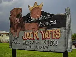 7. ^ a b c d e "About" (Archive). Jack Yates High School. Accessed October 20, 2008