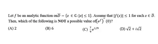 In particular, $|g''(0)| < 6$. (All the other options are smaller in modulus than $2e$.)