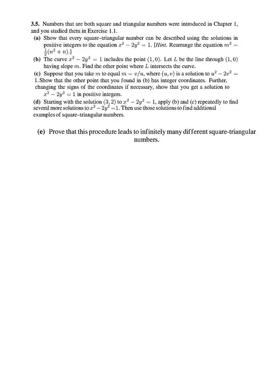 By taking a line through $(1, 0)$ it is possible to find a point where the line crosses another point of $x^2 - 2y^2 = 1$. Then we could take a line that passes through the that point and find another point which intersects $x^2 - 2y^2 = 1$. We can repeat this as many times as we like. My question is, why does this procedure to infintly many different solutions to $x^2 - 2y^2 = 1$? I am only looking for integer solutions. Thank you.