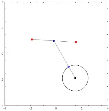 Just to clarify (to reiterate comment below in answer to question by @Anaedonist), given a step size of 1 unit (the unit circle around the black point), the black point will move 1 unit in the direction of the midpoint (dark blue) of its corresponding pair (red), so its new position is the light blue point (image on left), unless the midpoint is inside the unit circle, in which case, the step size is smaller, and the light blue point reaches the midpoint (image on right):