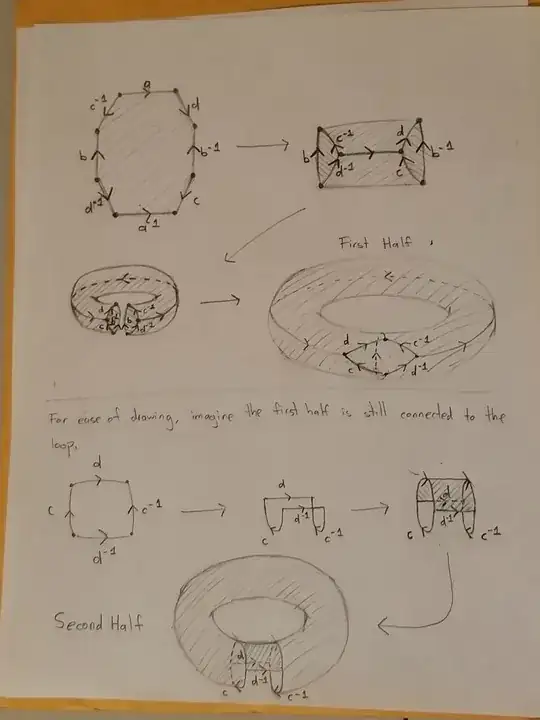 Now, this construction is intrinsically different from the one linked in the video. The $cd^{-1}c^{-1}d$ path in the image is a loop the is homologous to zero, yet not null-homotopic. This is not true for the two pairs of opposite sides in the video.