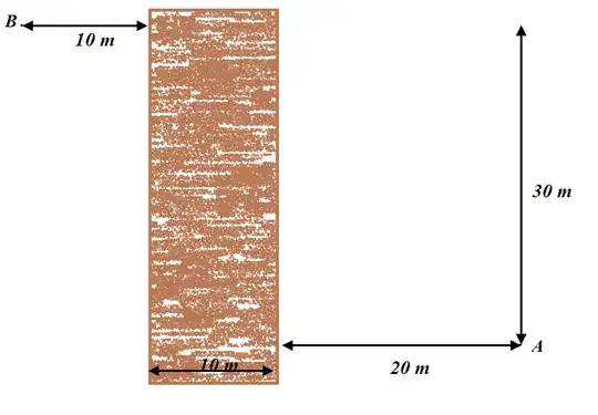 Therefore the path will enter the sand strip about $4$ m below $B$.