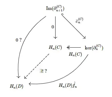 since $H_n(D)=\ker(\bar{c}_n^{(D)})$ by definition. This provides us with a unique arrow $H_n(C)\to H_n(D)$ in the cokernel diagram, and this arrow is what we wanted.