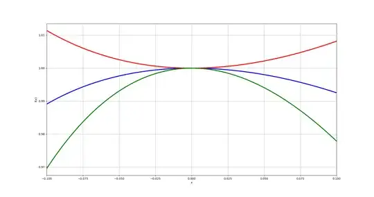 It turns out that $J$ is a $3×3$ matrix with rank $2$. This does not mean that the graph is not rigid; we still have to analyse the behaviour of $f$ along the infinitesimal motion associated with this rank-deficient $J$. Such a motion is given by an element of the nullspace of $J$; suppose this element is $(\delta_1,\delta_2,\delta_3)$. Define
