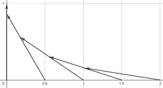 Consider a set of domino tiles with zero thickness evenly spaced apart. Now let them fall but hold the last one upright. The arangement could now look like this: