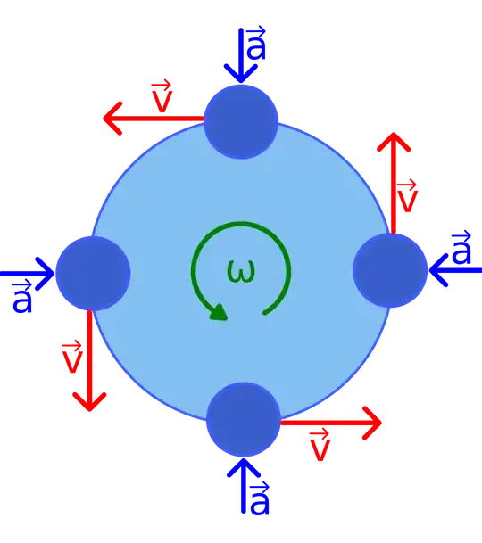 Likewise, the blue acceleration vectors (which should, for consistency sake, emanate from points along the curve, just as the red velocity vectors, but I guess due to lack of space, the picture is drawn the way it is) also belong to the same vector space as the red velocity vectors.